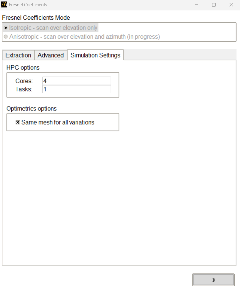 The extension supports two regimes for processing Fresnel Coefficients: