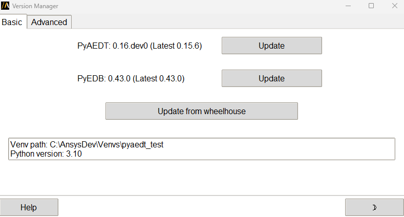 The Version manager extension allows users to manage and update PyAEDT and PyEDB installations.