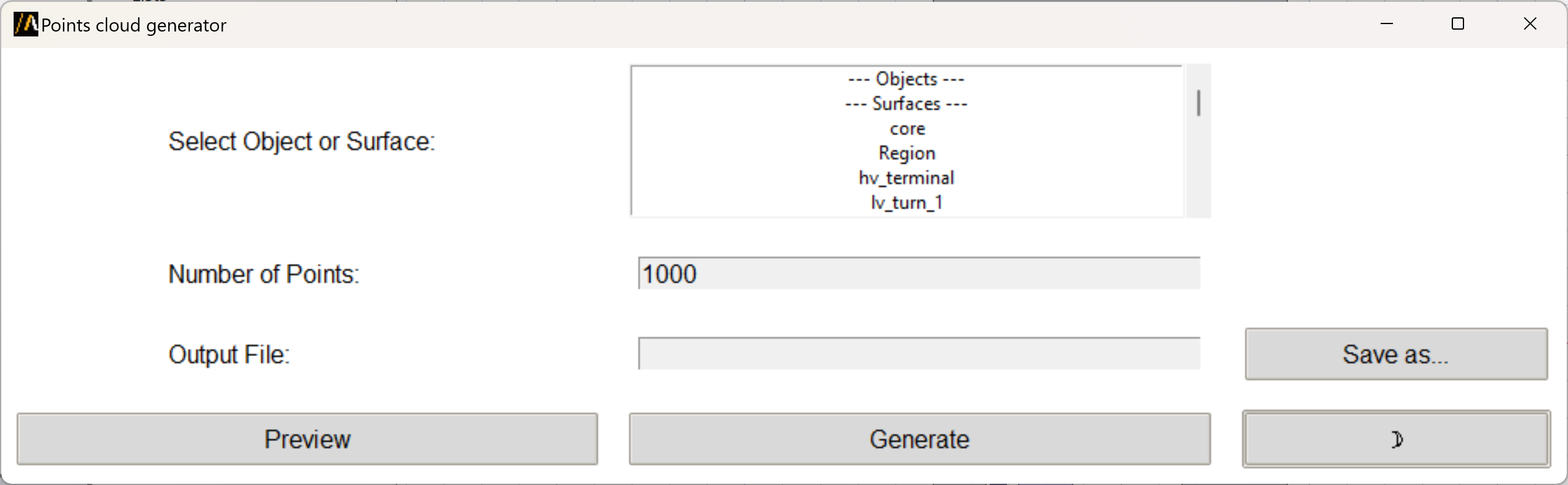 This extension relies on the PyVista point cloud, a collection of points in 3D space, typically used to represent the shape or surface of an object. Each point in the cloud is defined by its own coordinates (x, y, z). Selected objects are defined by an OBJ file which is a standard 3D model format used to represent 3D geometries. It contains information about the vertices, vertex normals, and texture coordinates of the model, as well as the faces that make up the 3D object. The extension first reads a mesh data from the OBJ file and loads it into a PyVista mesh object (mesh). The mesh is then converted into a triangulated form. This means that all the faces of the mesh are broken down into triangles. The triangulated mesh is then used to generate a point cloud. The point cloud is created by sampling points from the surface of the mesh.
